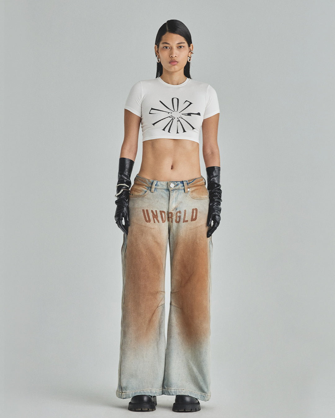 W Spring UNDRGLD Low Rise Zip Up Wide Jeans Brown